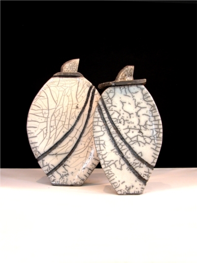 Mijn keramische werkstukken kunt u op uw gemak bekijken tijdens een wandeling door het bos achter ons huis. Tijdens het open ateliers weekend gaan we Raku-stoken. Raku is een oude Japanse stooktechniek: een spektakel met veel rook en vuur. De resultaten zijn altijd weer verrassend