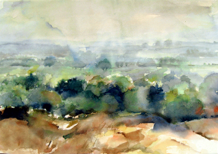 Aquarellen en acrylschilderijen met de natuurlijke omgeving als inspiratiebron: landschap onder wisselend licht, bos, bomen en planten. Niet de letterlijke weergave maar de beleving van het onderwerp staat centraal. Hierbij spelen licht/donker contrast en herhaling van beeldelementen een belangrijke rol.